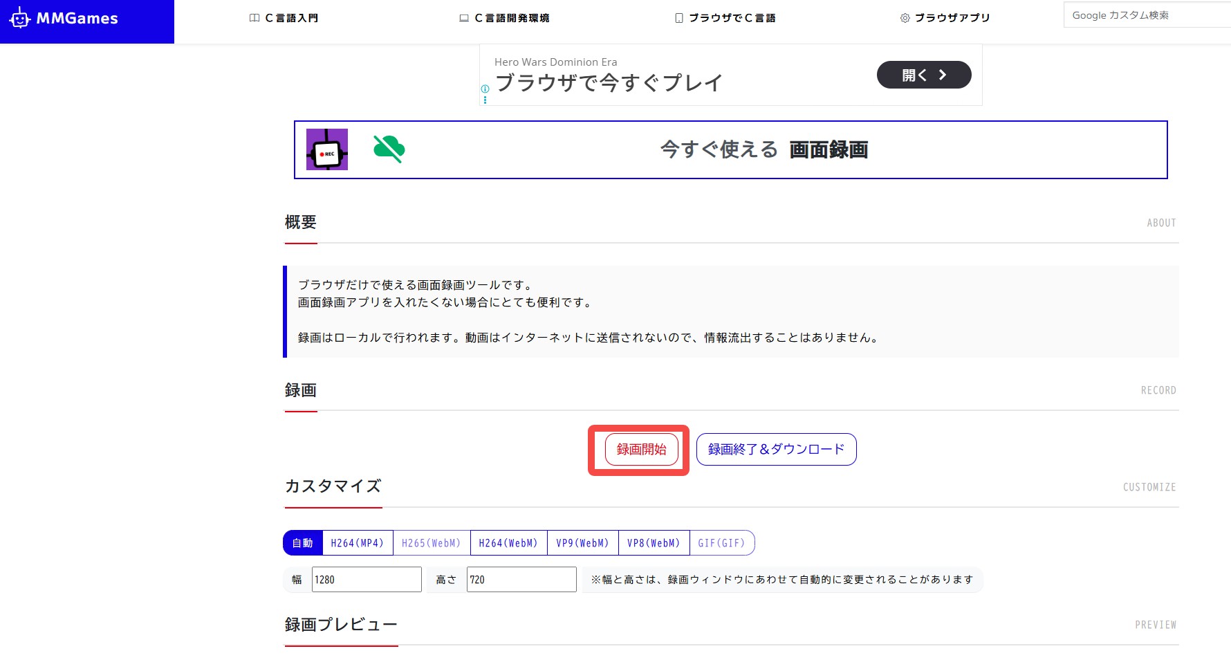 ページ:https://9cguide.appspot.com/web_screenrecord.html