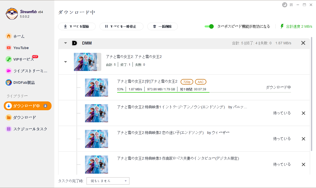 5. 「ダウンロード中」を開いて、ダウンロード進歩とダウンロードした動画を確認できます。