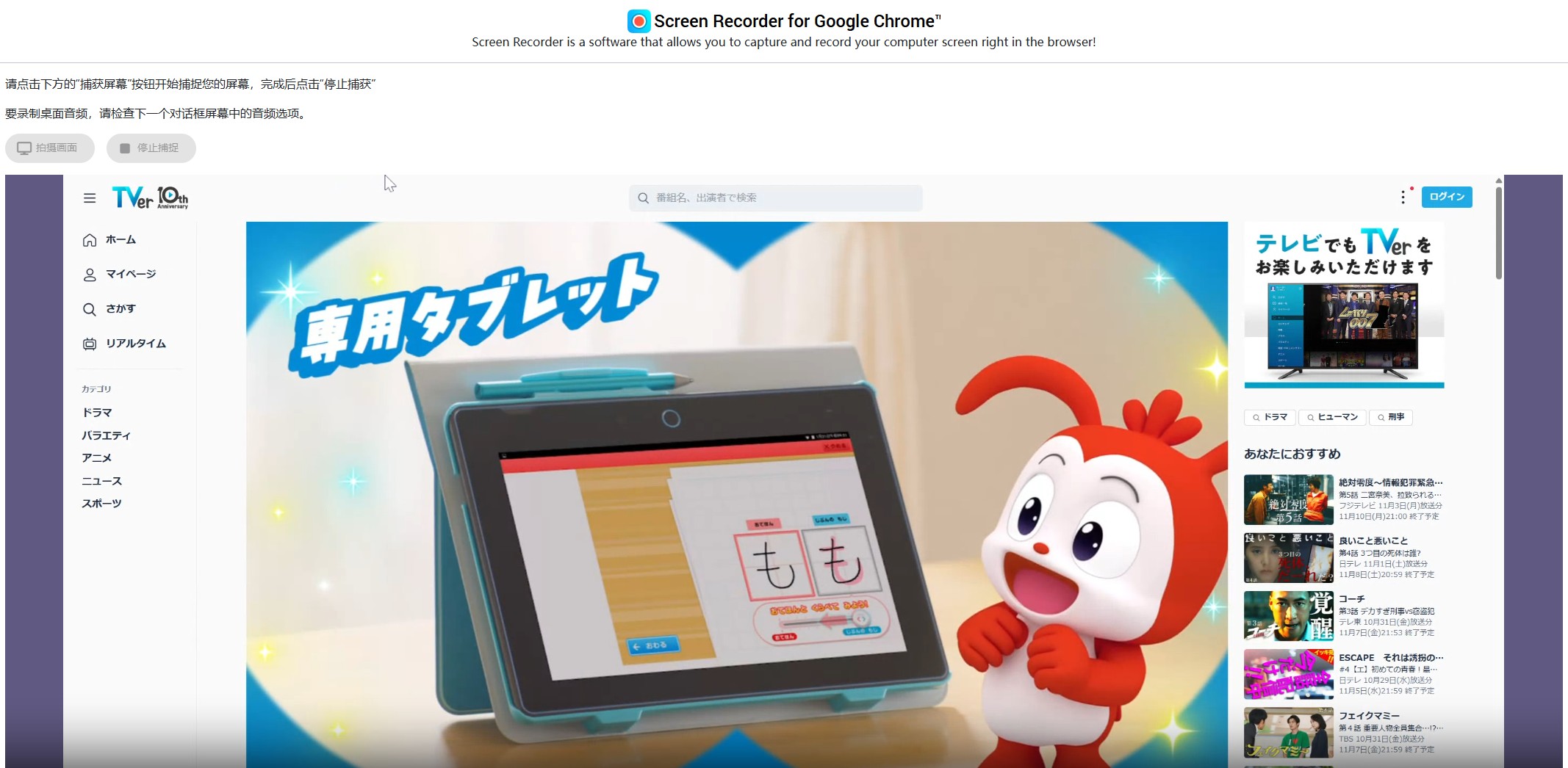 動画再生や再生中の録画動画を録画するだけ、配信動画録画に非対応 |