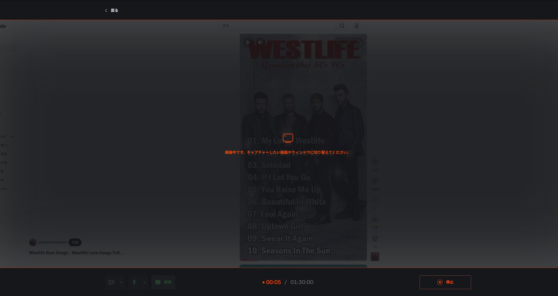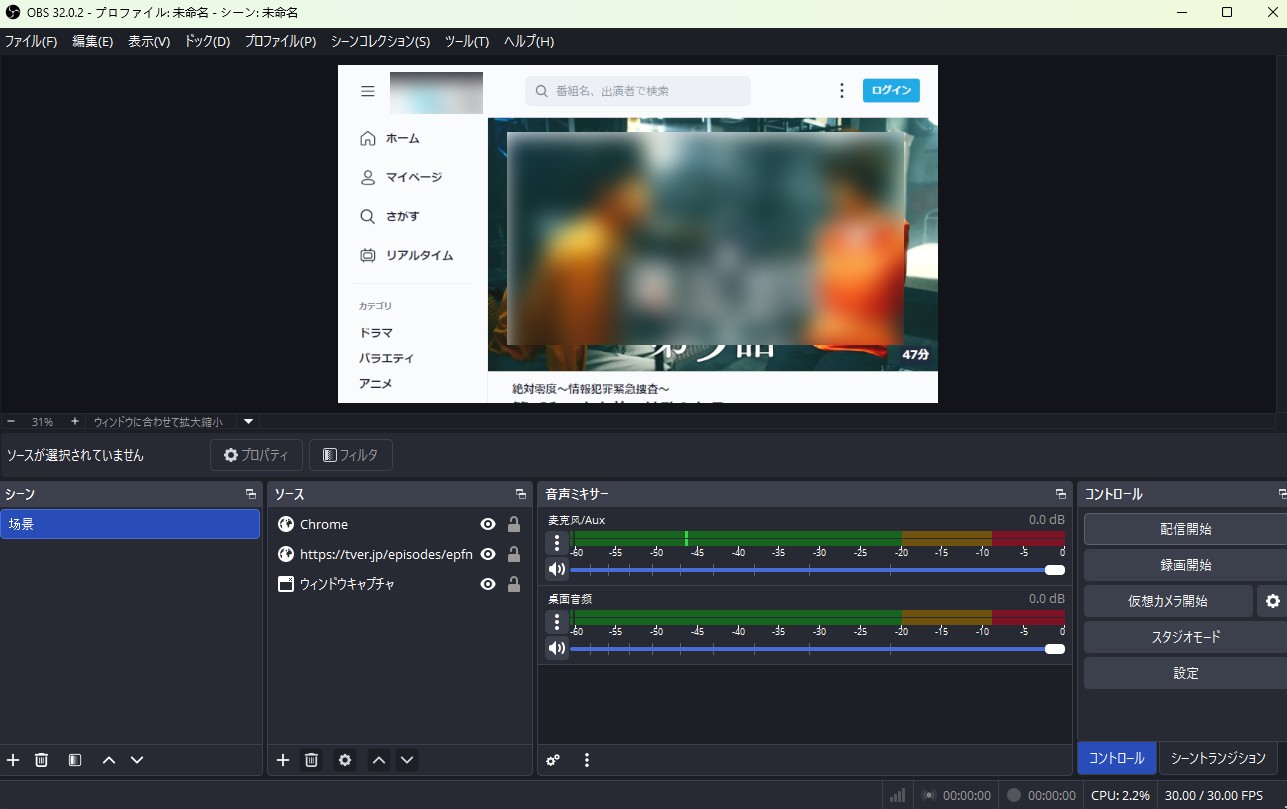 ローカルで再生中の動画は録画可能。ただし、配信動画の録画では映像が止まったまま音だけ録れる、あるいは全体が黒くなる場合があります。