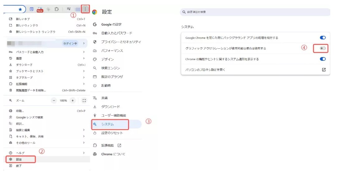 1.ブラウザのハードウェアアクセラレーションを無効化