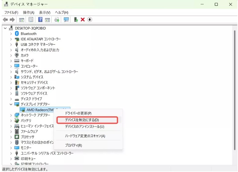 2.ディスプレイアダプタの無効化(検証目的の一時的措置)